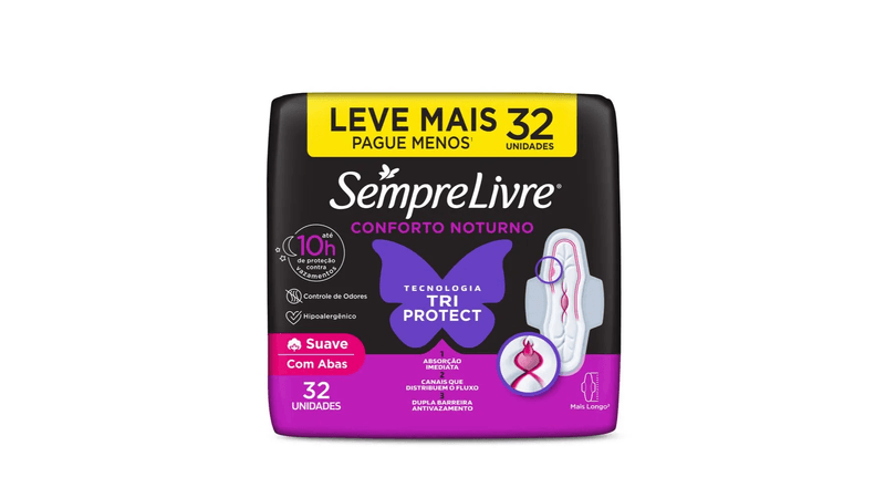 Absorvente Sempre Livre Conforto Noturno Suave Com Abas 32 Unidades