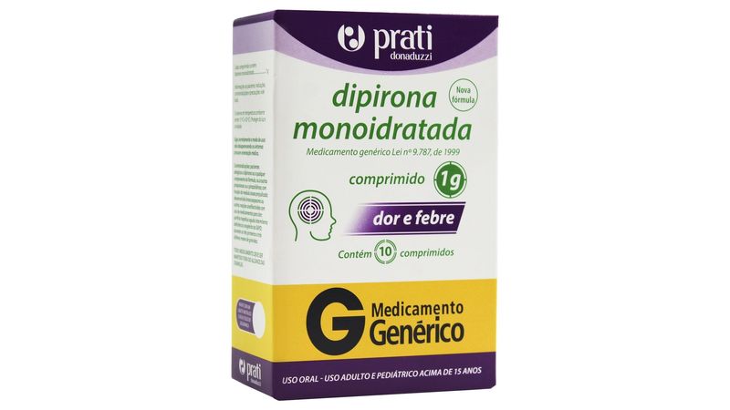Dipirona Monoidratada 1g 10 comprimidos Genérico Prati Donaduzzi