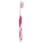 Escova dental para adultos com cerdas médias e ponta ativa para alcançar áreas difíceis. Cabeça tamanho 35 e cerdas arredondadas que limpam com eficiência sem agredir. Cabo ergonômico e antideslizante para melhor controle. Cor rosa. Uso diário.