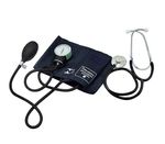 Esfigmomanômetro Aneróide Premium com Estetoscópio: Bolsa de viagem contendo 1 esfigmomanômetro aneróide completo, um estetoscópio simples premium e um manual de instruções.