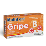MultiFort Gripe possui vitamina B e Zinco que complementam a ação da vitamina C no sistema imunológico, e também participa da produção de anticorpos e da formação e funcionamento das células responsáveis pela defesa do nosso organismo. MultiFort Gripe é o reforço para o sistema imunológico no período da gripe.