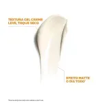 O protetor solar facial não possui cor e sua textura é em gel creme para proteger contra raios UVA/UVB e danos infravermelhos.